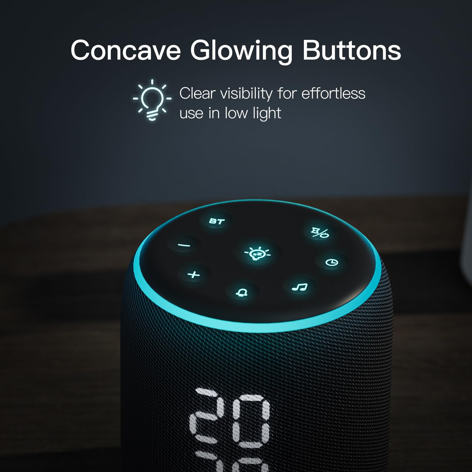 ● 𝙎𝙤𝙪𝙣𝙙 𝙔𝙤𝙪 𝘾𝙖𝙣 𝙏𝙖𝙠𝙚 𝘼𝙣𝙮𝙬𝙝𝙚𝙧𝙚: Enjoy smooth Bluetooth 5.0 audio for music anywhere. Compact, battery-powered, and travel-ready, it fits easily into any bag or bedside, with auto time-sync wherever you go