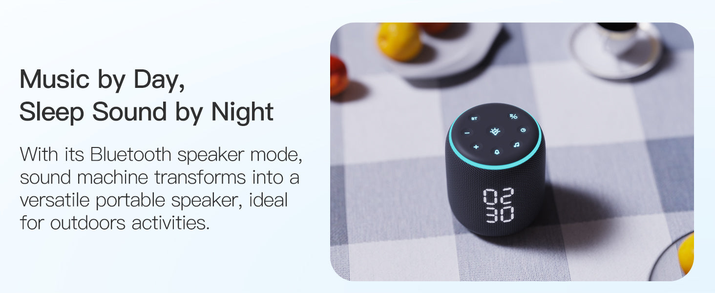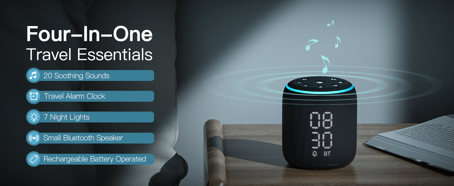 ● 𝙔𝙤𝙪𝙧 𝘼𝙡𝙡-𝙞𝙣-𝙊𝙣𝙚 𝘾𝙤𝙢𝙥𝙖𝙣𝙞𝙤𝙣: A sound machine, alarm clock, night light, and Bluetooth speaker in one compact, rechargeable unit—your nightstand hero for better sleep, softer wakeups, and peaceful nights at home or away
